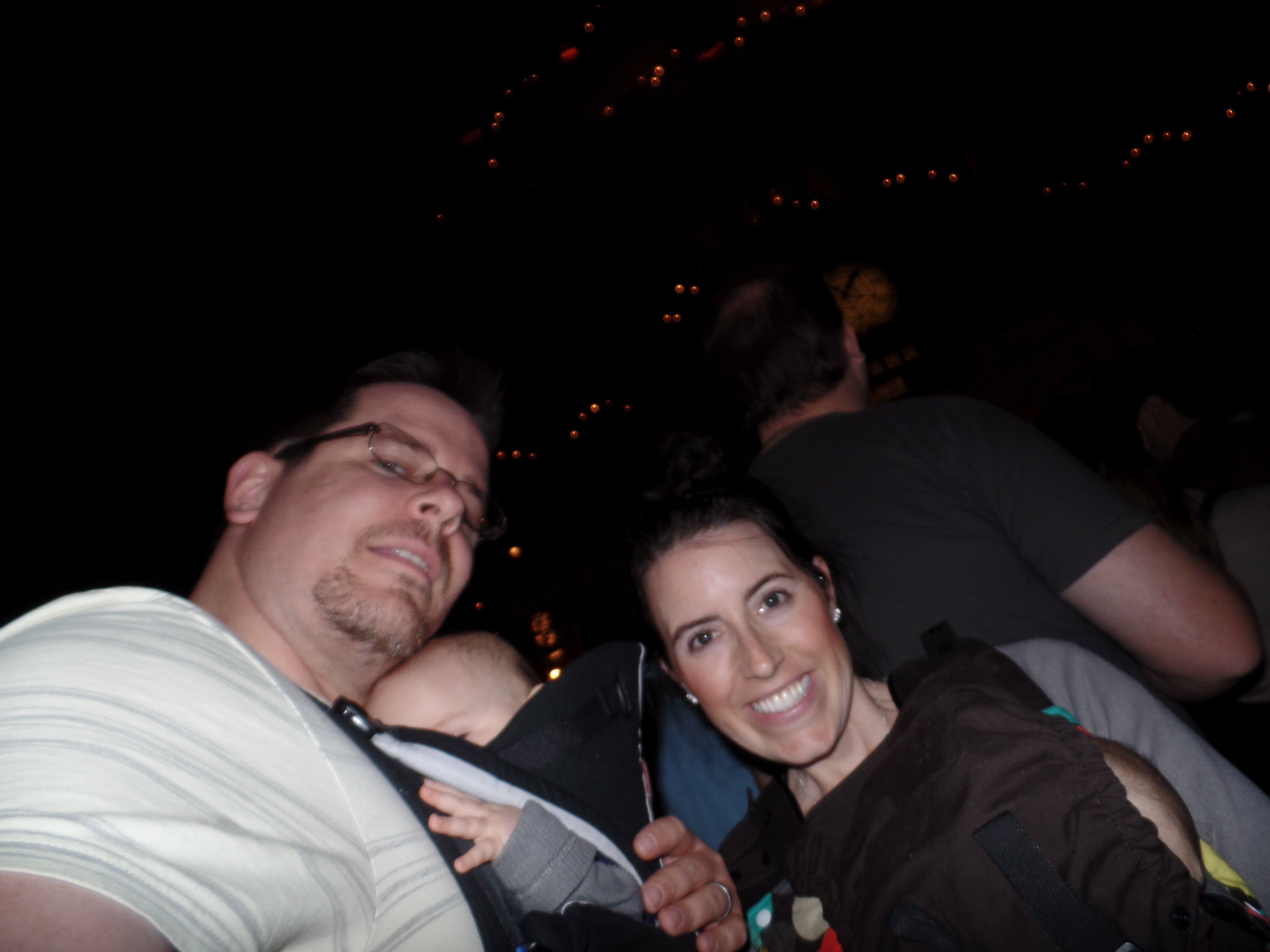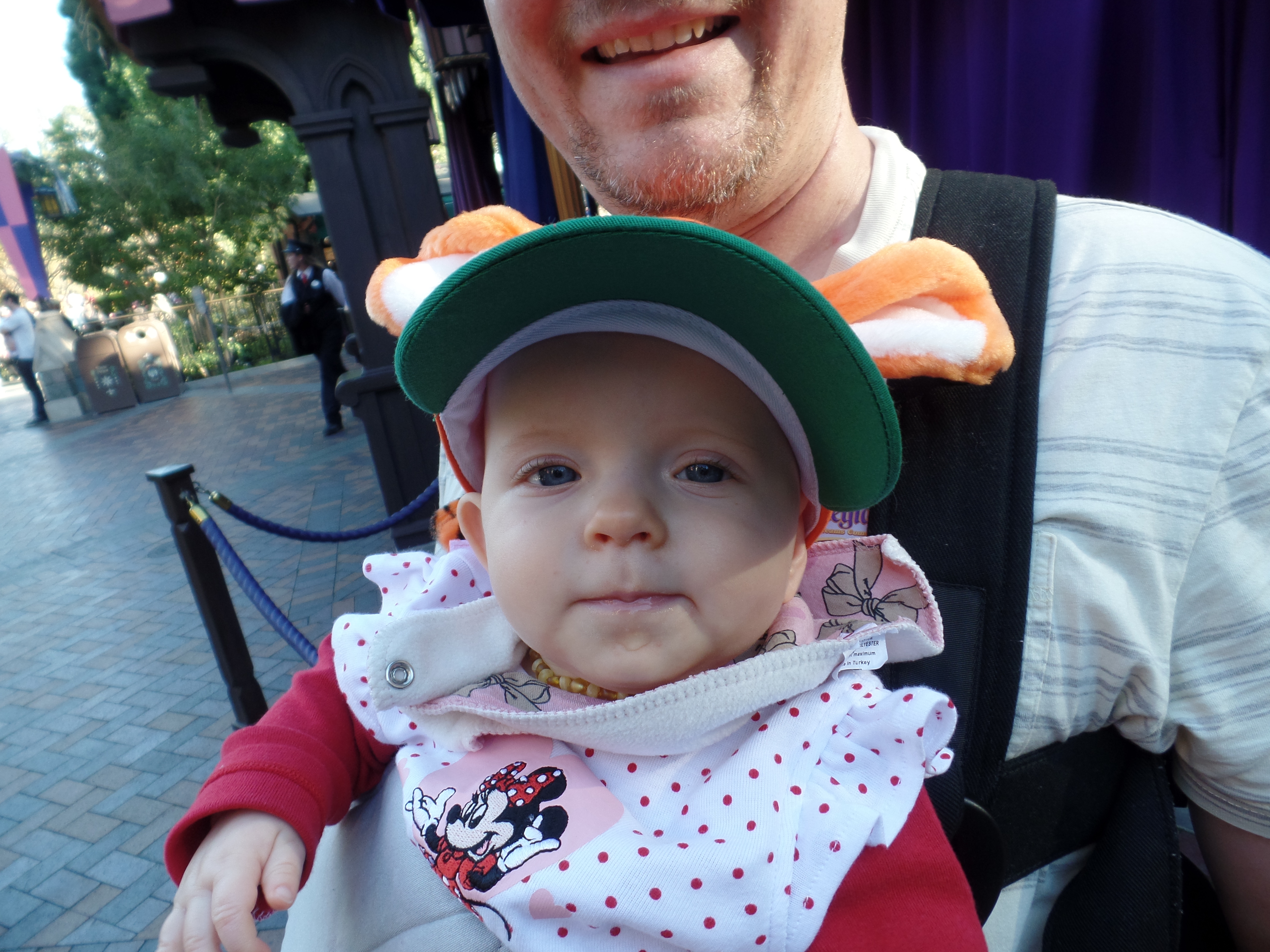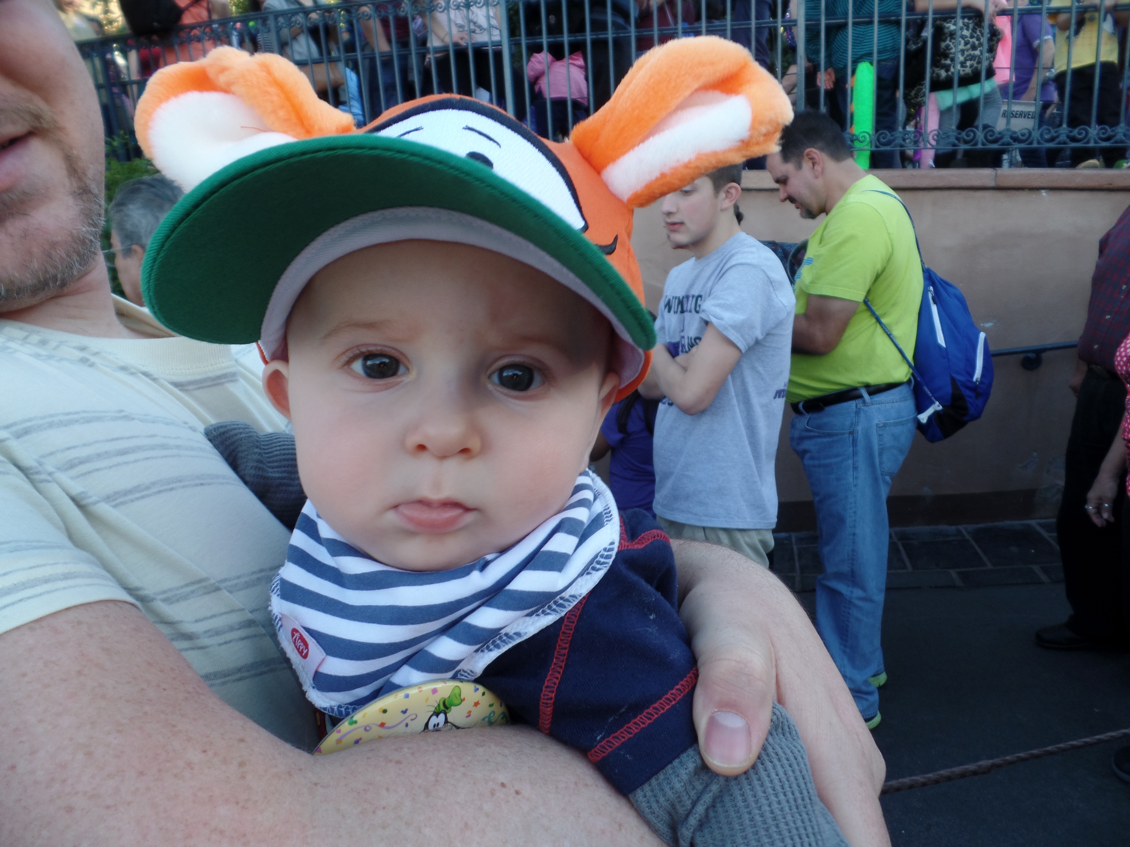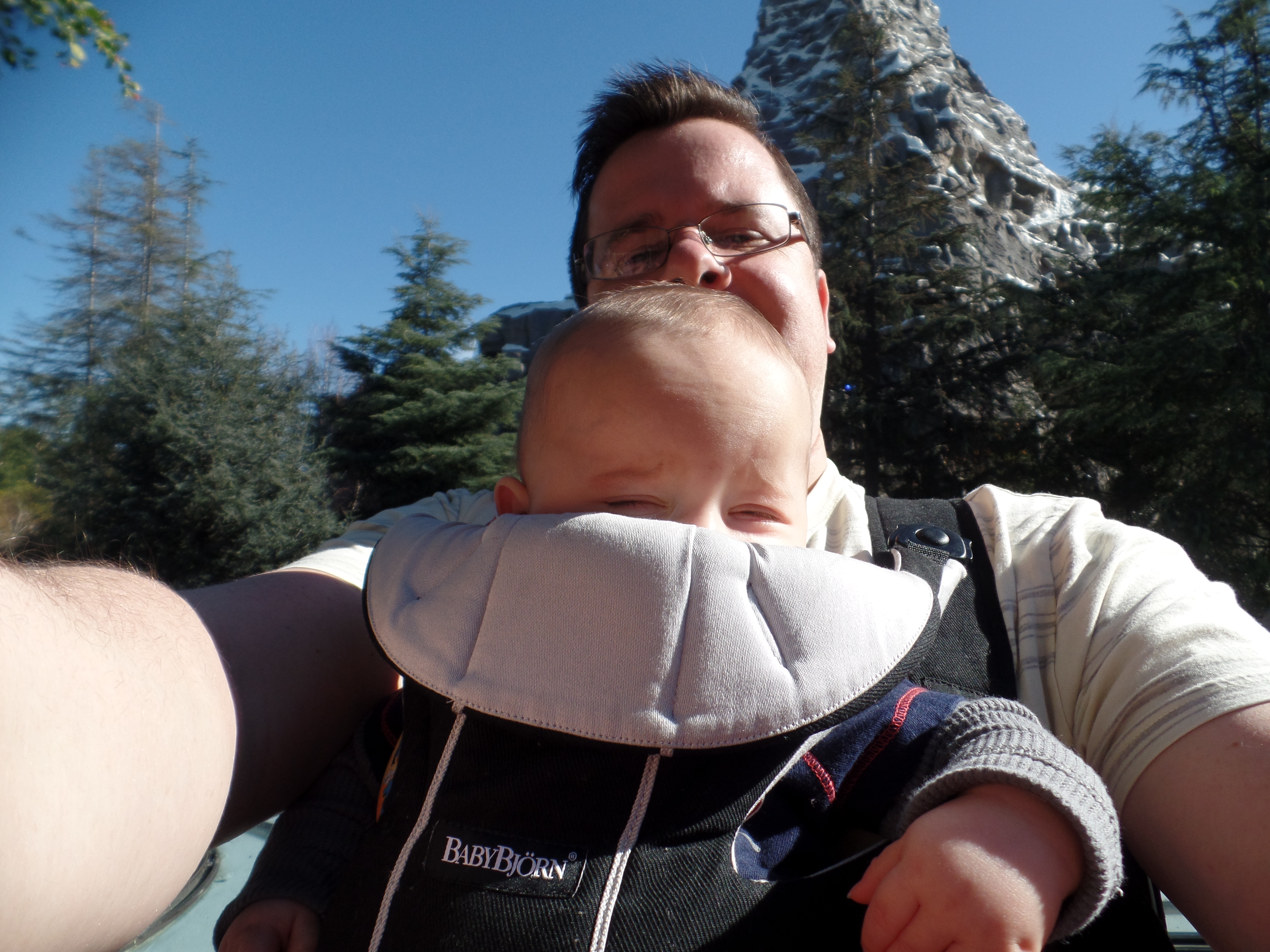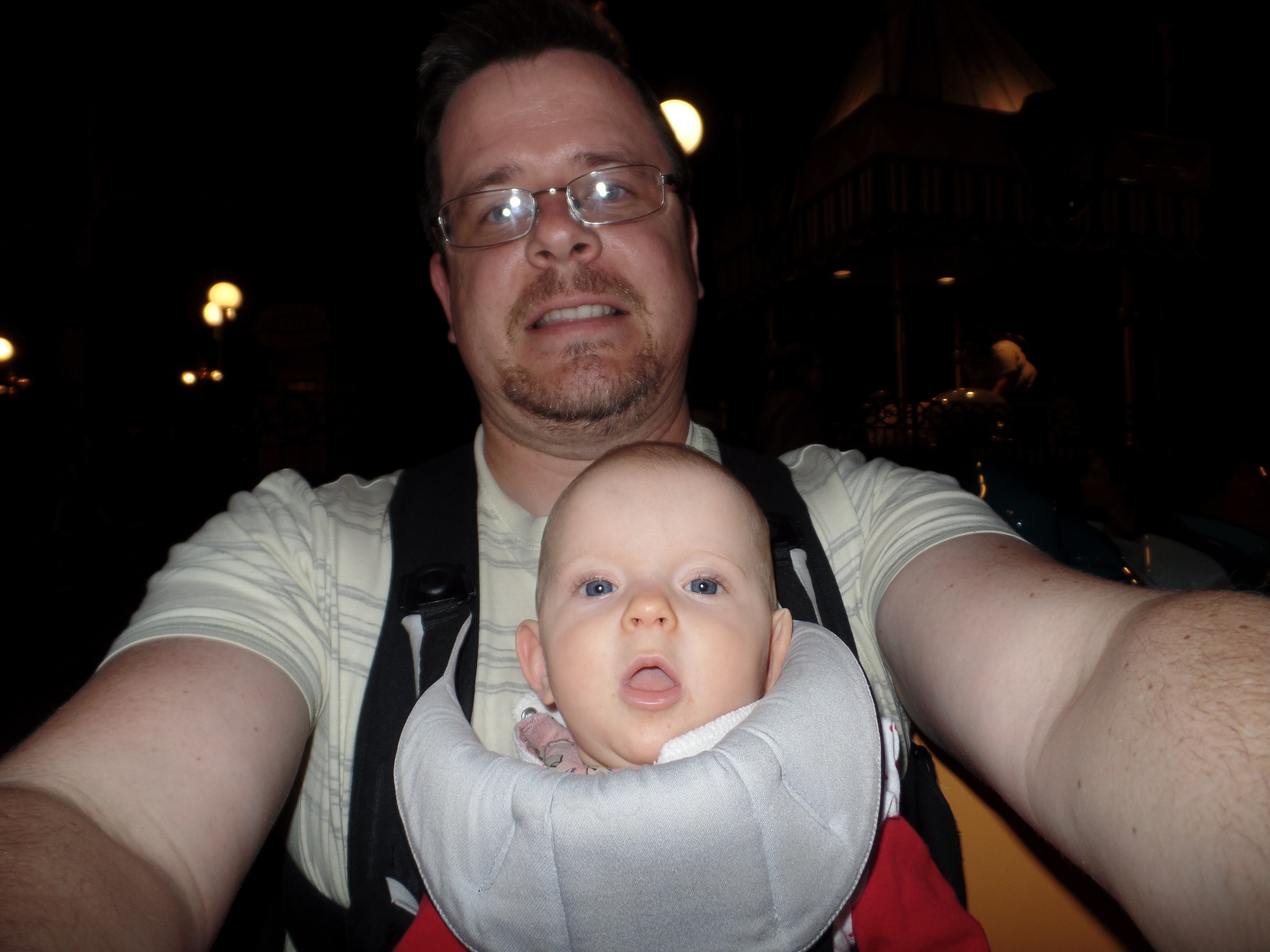 Daddy is having fun… Avery not so much. We also went on the Haunted Mansion and Pirates of the Carribean… and fell asleep during the rides, or slept through them from beginning to end. We are brave babies who are not easily impressed.