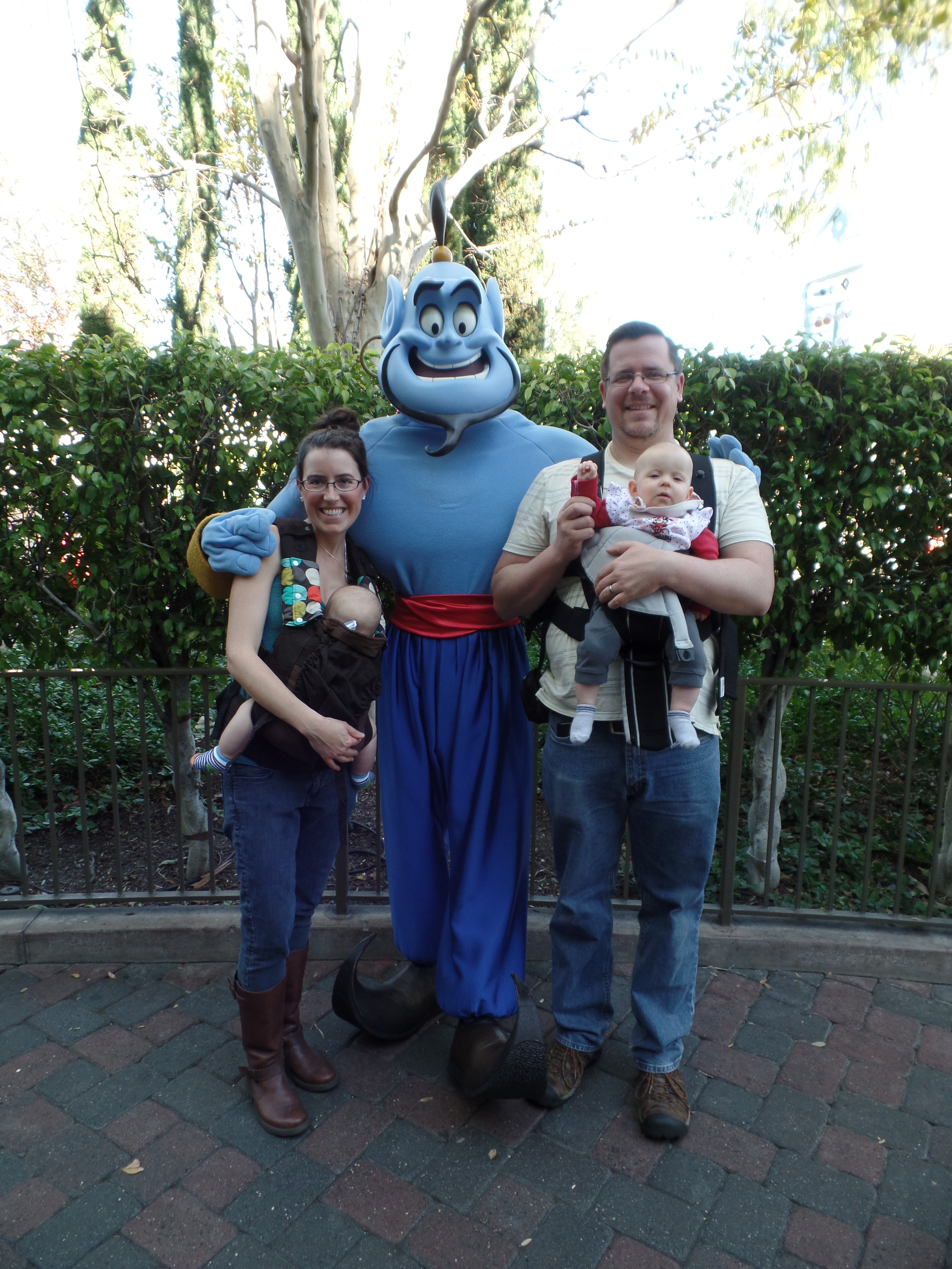 We got a family picture with the Genie- the Genie, however, was much more interested in flirting with the pretty girls just outside of the picture than in taking pictures with babies! Also, Mom got her beloved Mickey pretzel.