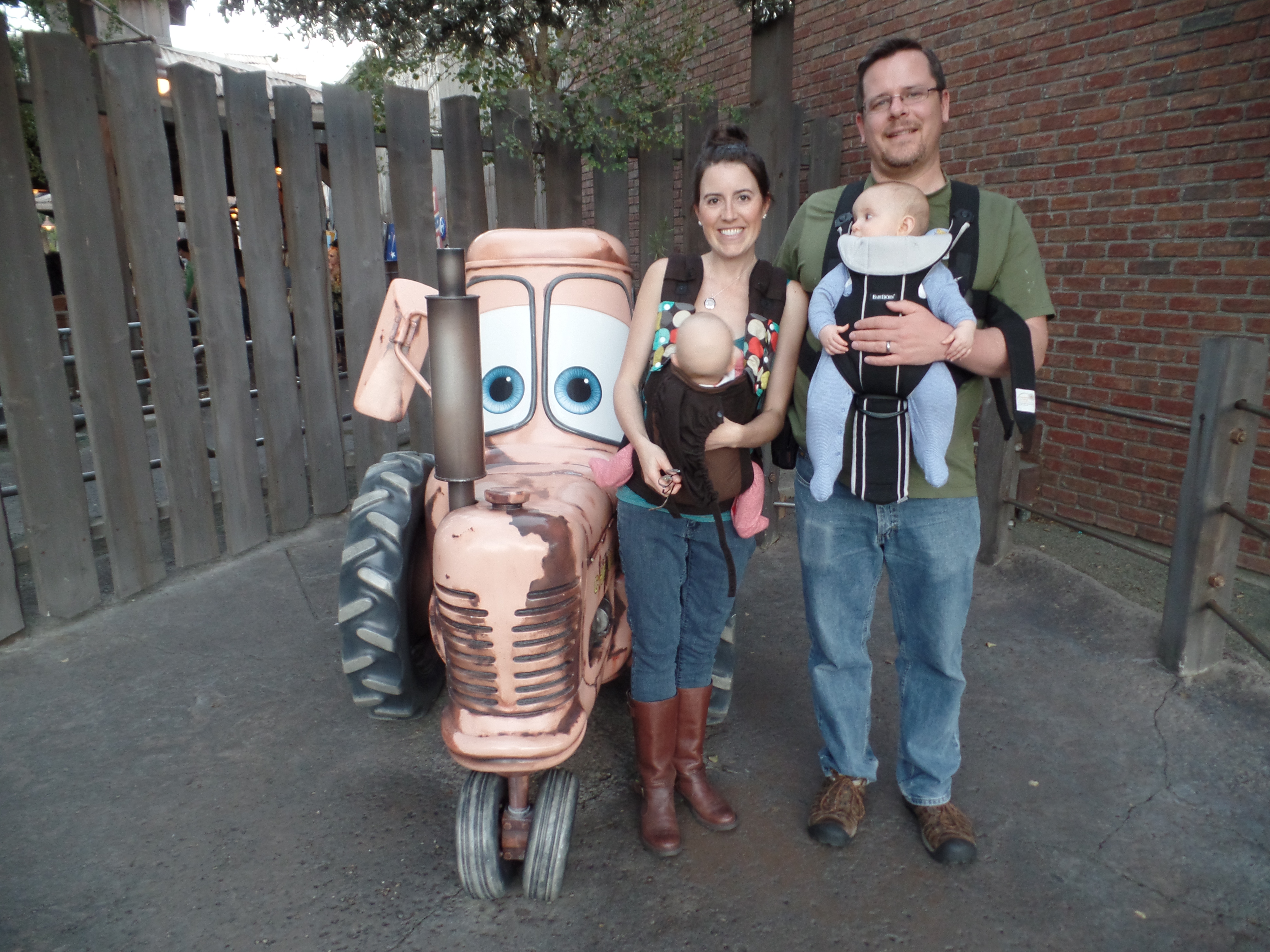 New Carsland- we were too tiny to go on the rides, but we could take a picture with Mater (okay, this is an edit. I realize now, upon closer inspection, that this is in no way Mater and is in fact just a tractor)! Fun fact- the woman who took this had a little girl who is hidden behind Mater (tractor)- she refused to leave him so we could take a photo 😉