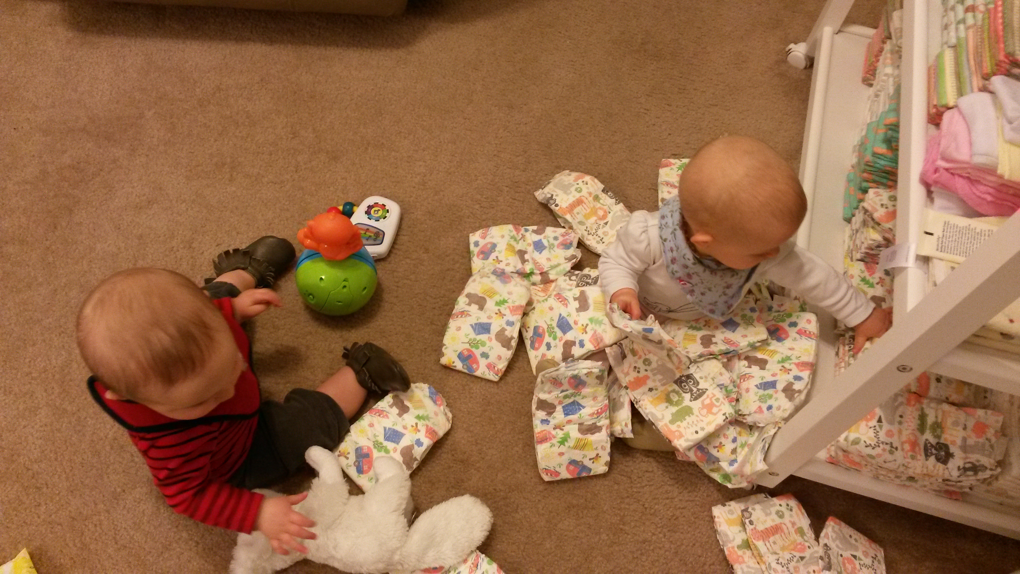Now that we can move, we can make fun messes, and we can play with each other better.  Sometimes we also take each other’s toys and make each other cry.