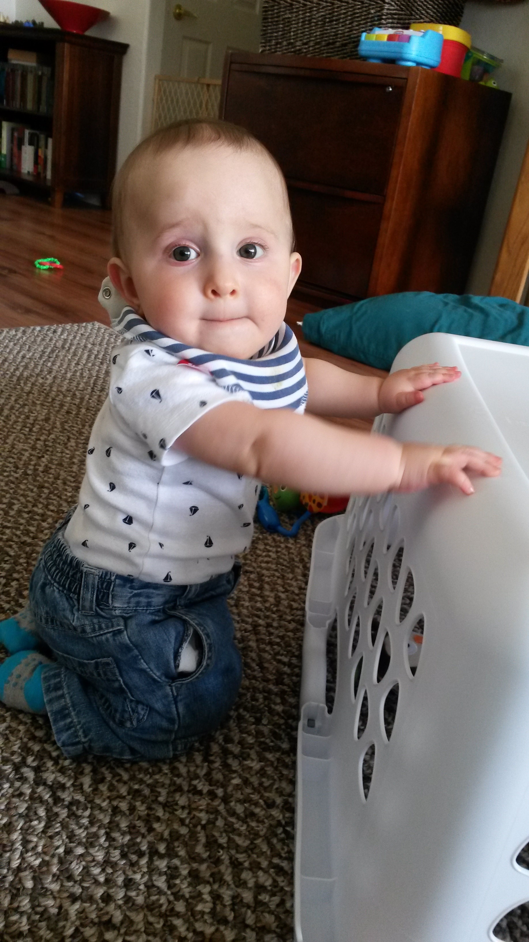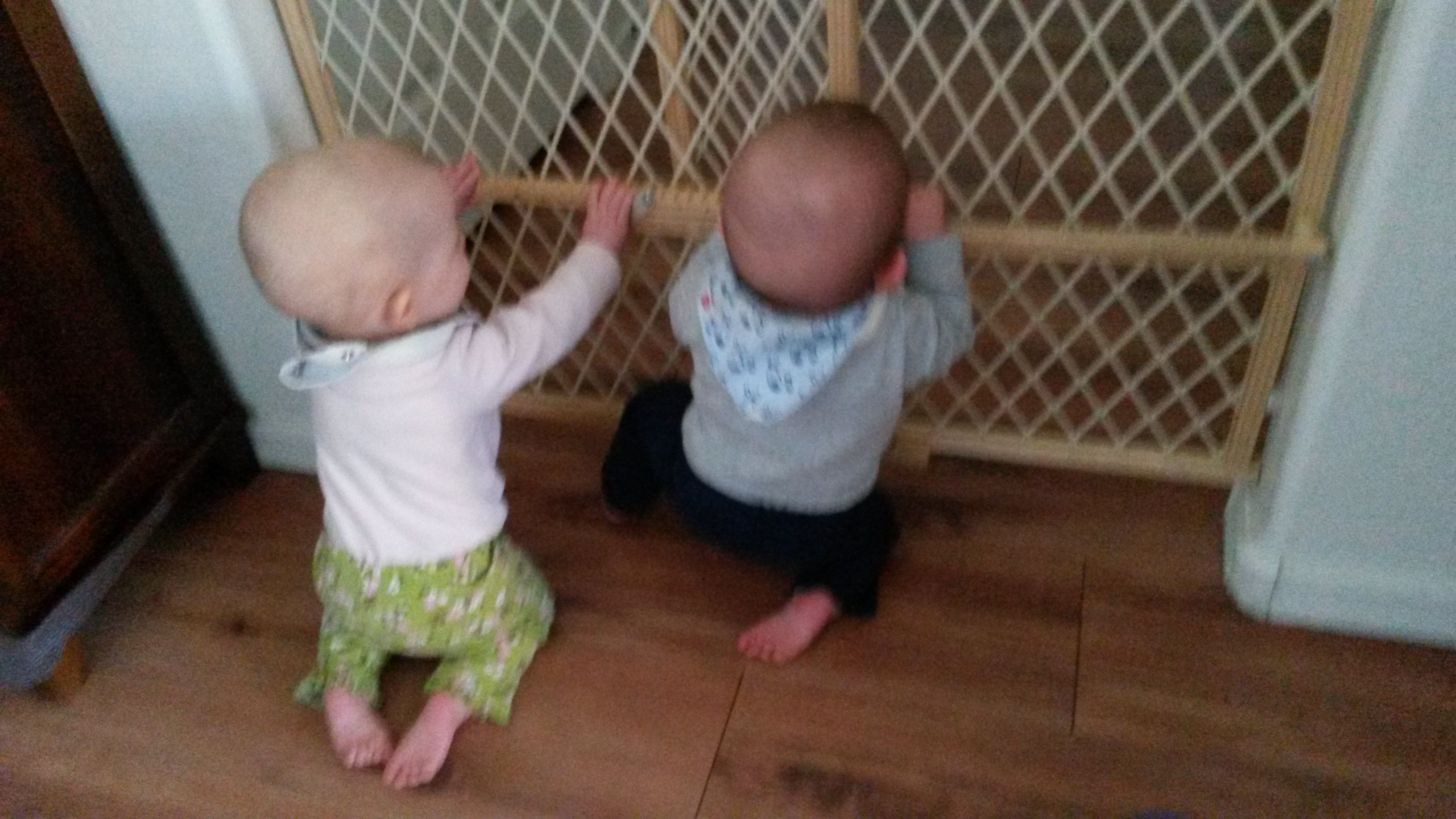 Avery crawled forward first, with Aurelia just about a week behind him.  This makes life lots more fun for us, and more stressful for mom and dad- everything is a hazard now!