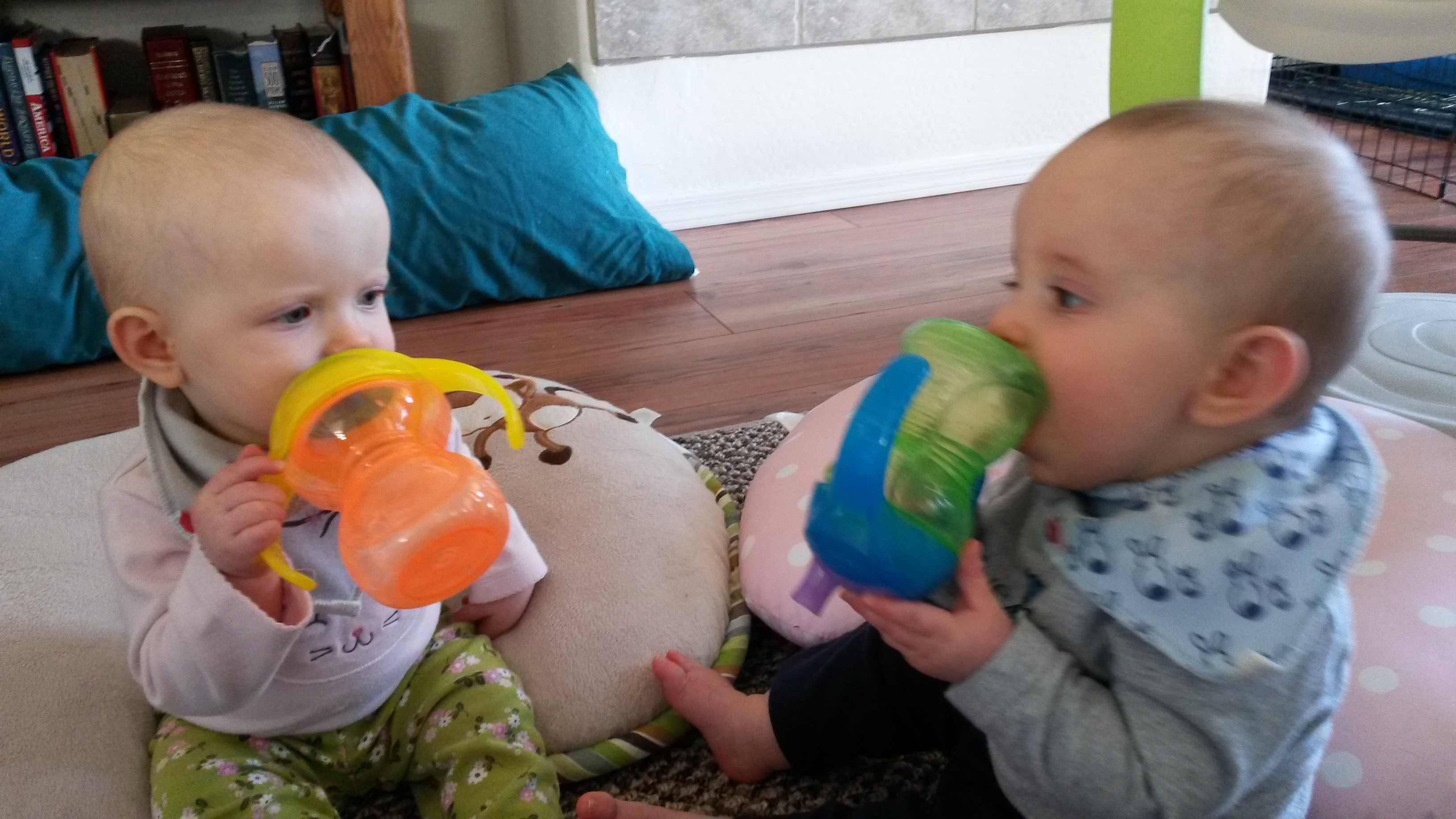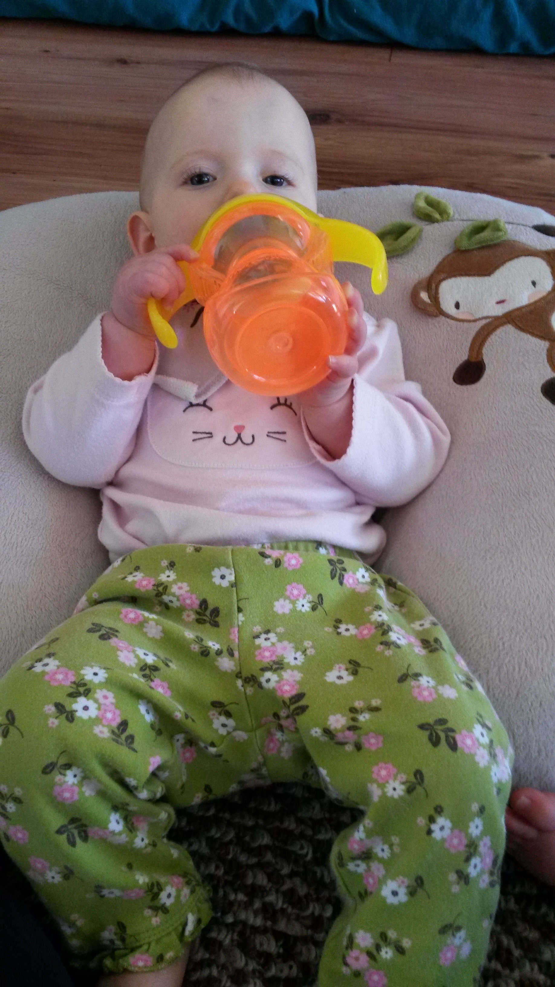 We are even starting to pull ourselves up on things, and we are practicing using our sippy cups!