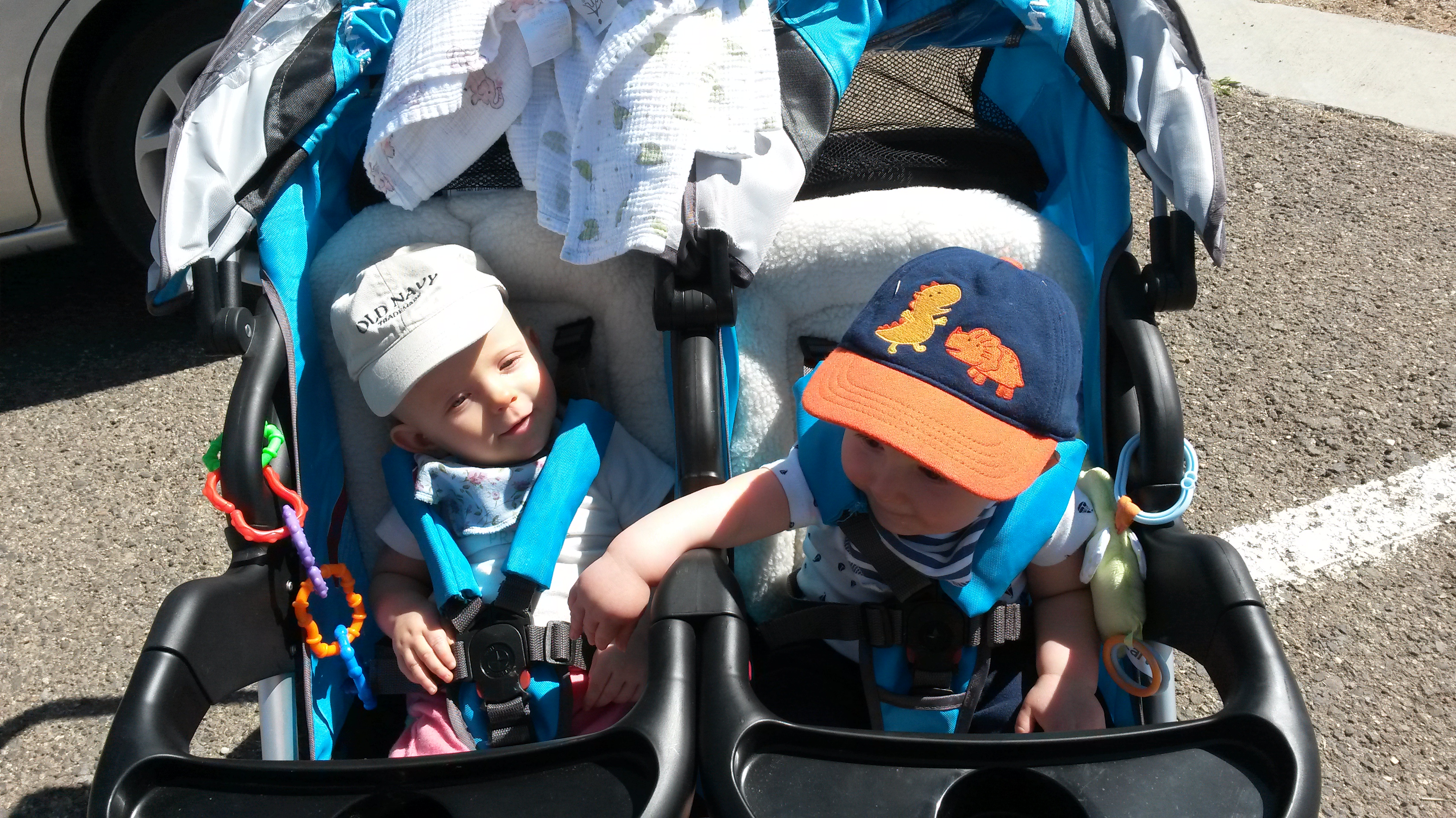 One month away from our first birthday! It’s a nearly impossible task to get two 11-month-olds to sit still, which makes our photo shoots hilarious 🙂