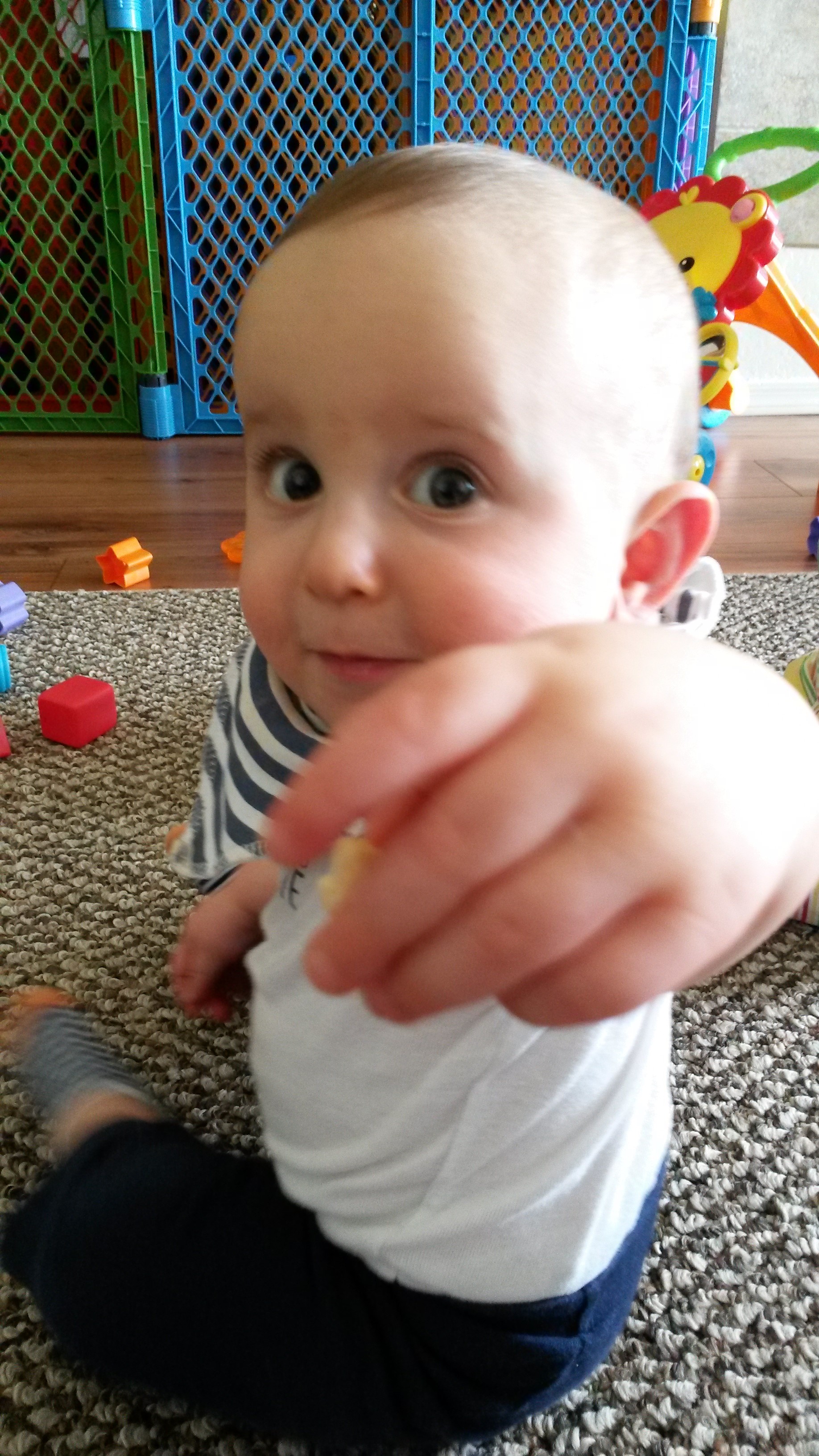 We are cutting even more teeth, and starting to understand a lot more words (like fan, kitty, Luna, light, mommy, daddy, sister, brother, cookie…)