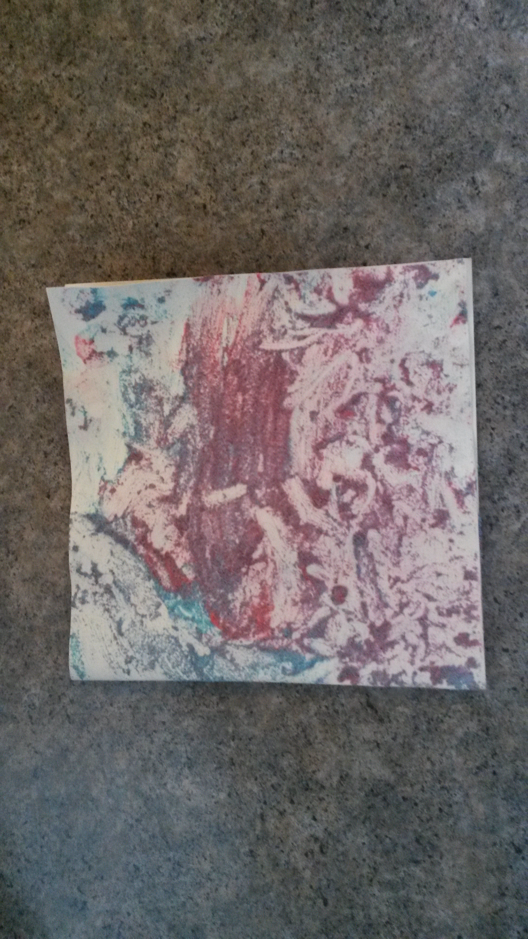 The finished products. Â Avery’s is on the left, Aurelia’s on the right. Â Any takers on interpretations, from a Modern Art perspective?