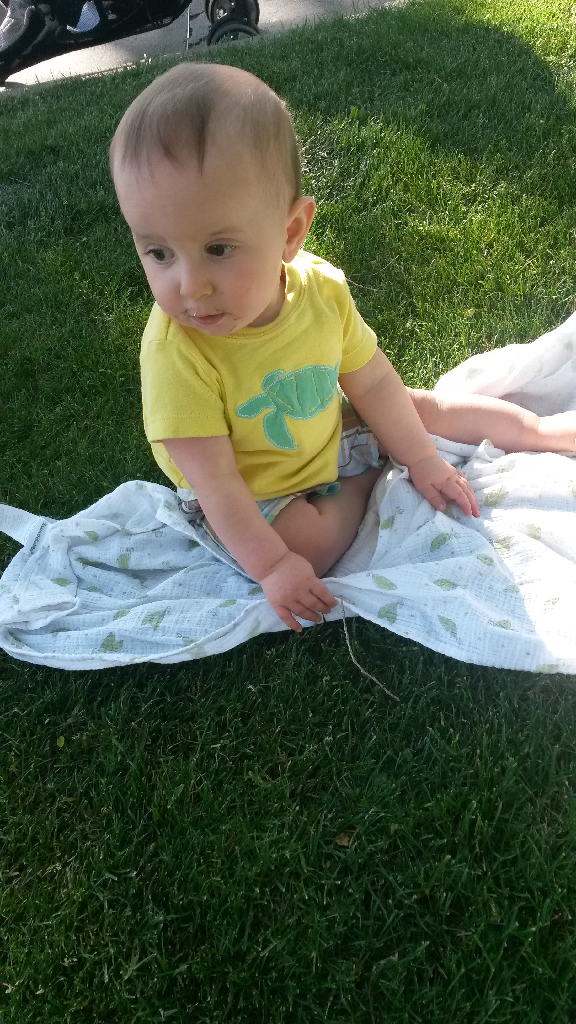 Now that we are one, we are doing some new things. We like to point at things and make sounds like “da” or “dum” (maybe “that!”because mommy and daddy always say “what’s that?”) and Aurelia clicks her tongue. Avery is very good at stacking things and he can take a block down from a tower very delicately. Aurelia will throw anything in her path out of her way.