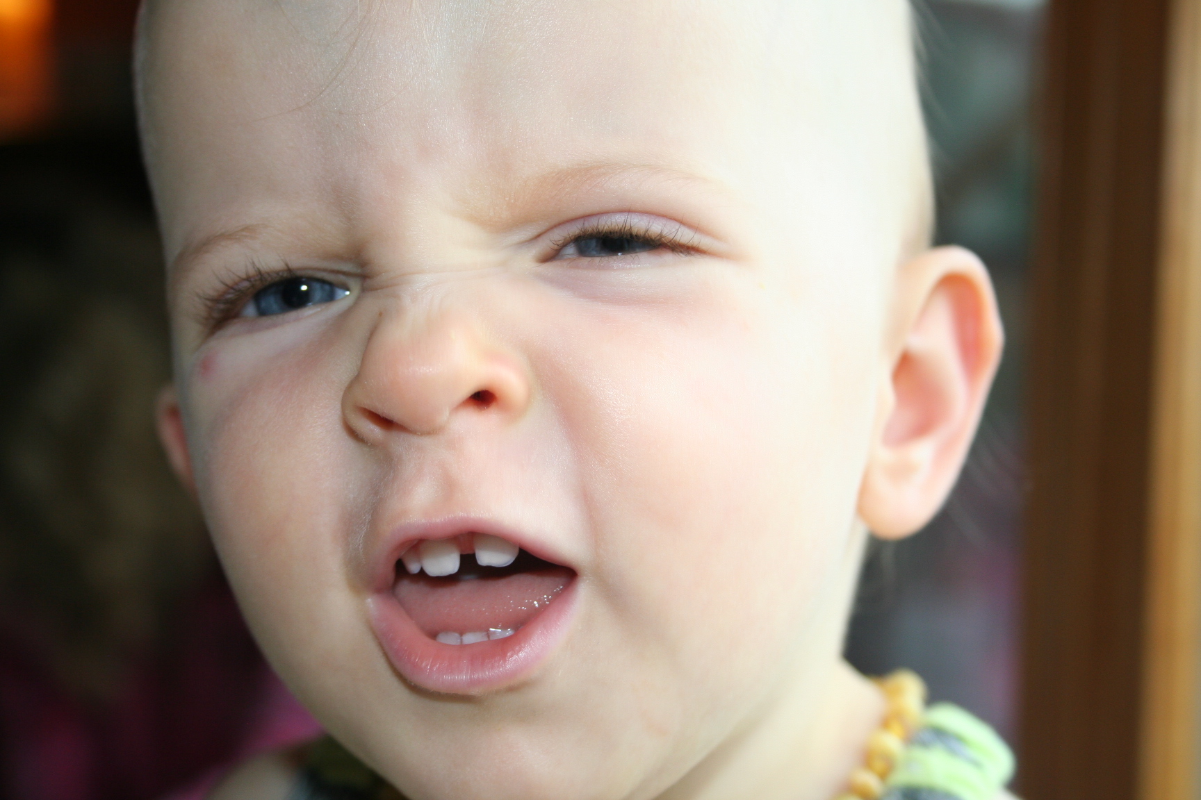 We sometimes get to eat at the table now, although we like to drop things and say “uh-oh”. And look how well we can eat corn on the cob now!