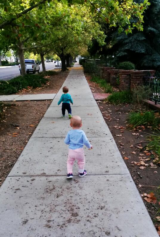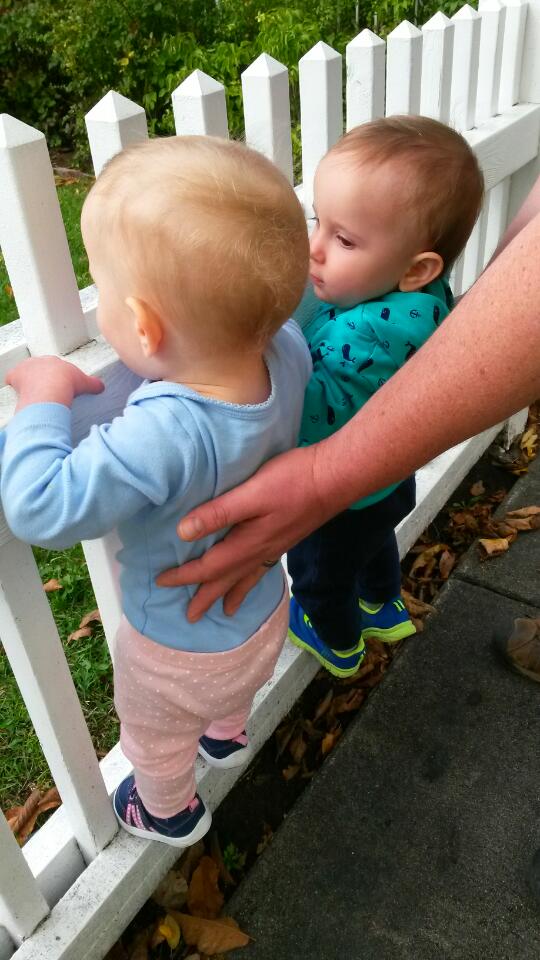 New things: Aurelia shakes her head “no” to just about any question you ask her.  We are both getting better at imitating words.  So Aurelia can say “ice” and Avery says “zebra” and we try to say “nemo” and “dude”. We LOVE LOVE LOVE Finding Nemo (Avery does the “ah-oo-ah-ee-ah-oo-oo-oo” noise all the time).  We also like Frozen.  We love dancing and we can now show people our muscles (see videos below).  We kiss each other a lot when we are in a good mood.  Otherwise we bite each other (yikes). We have added the wolf sound and the walrus to our animal repertoire.  Avery came up with the walrus sound all by himself (sounds like a big burp).We are now climbing on everything, too.