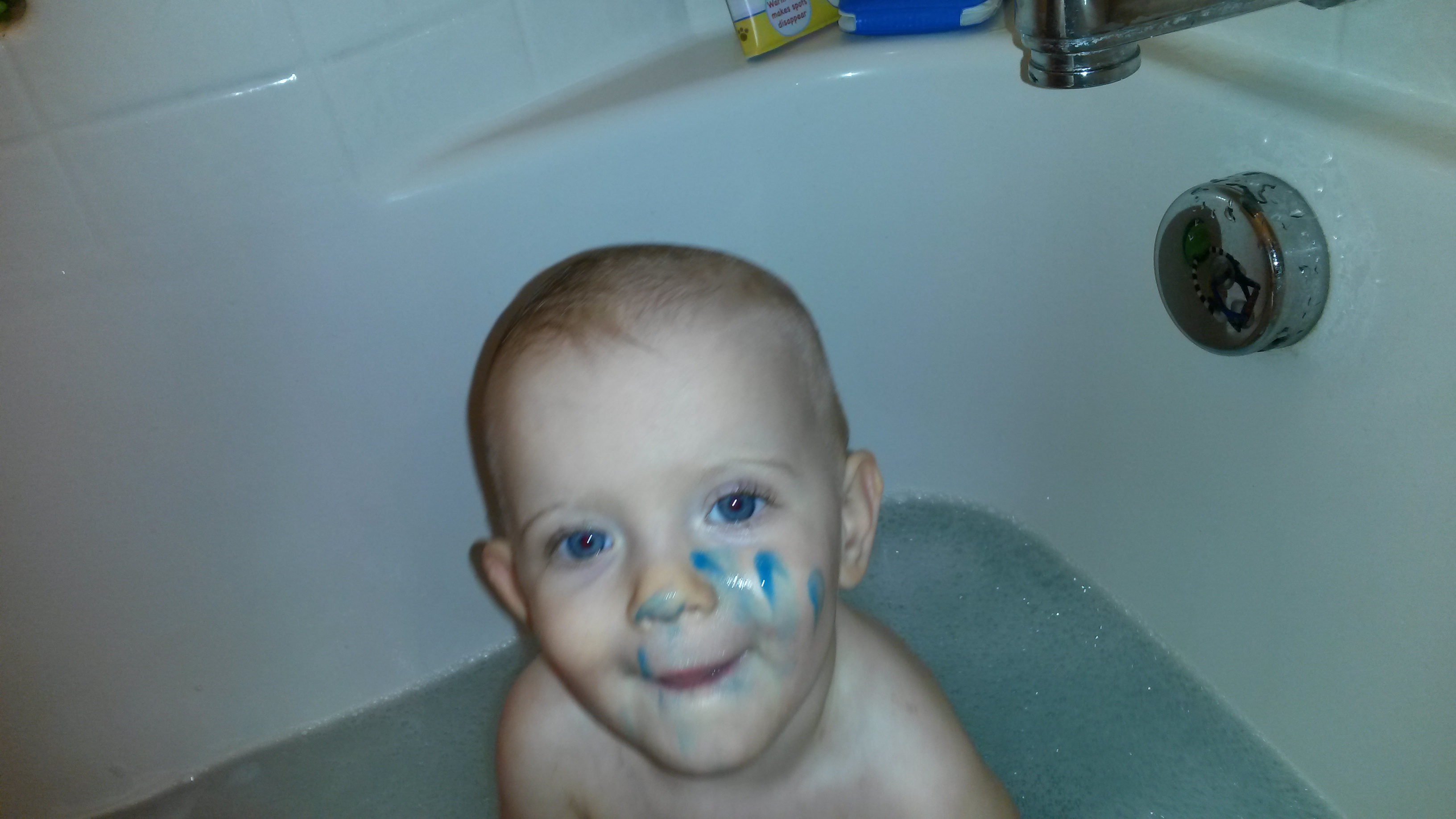 We are still practicing our artistic skills.  Here is a picture of us finger painting… and nobody tried to eat it.
