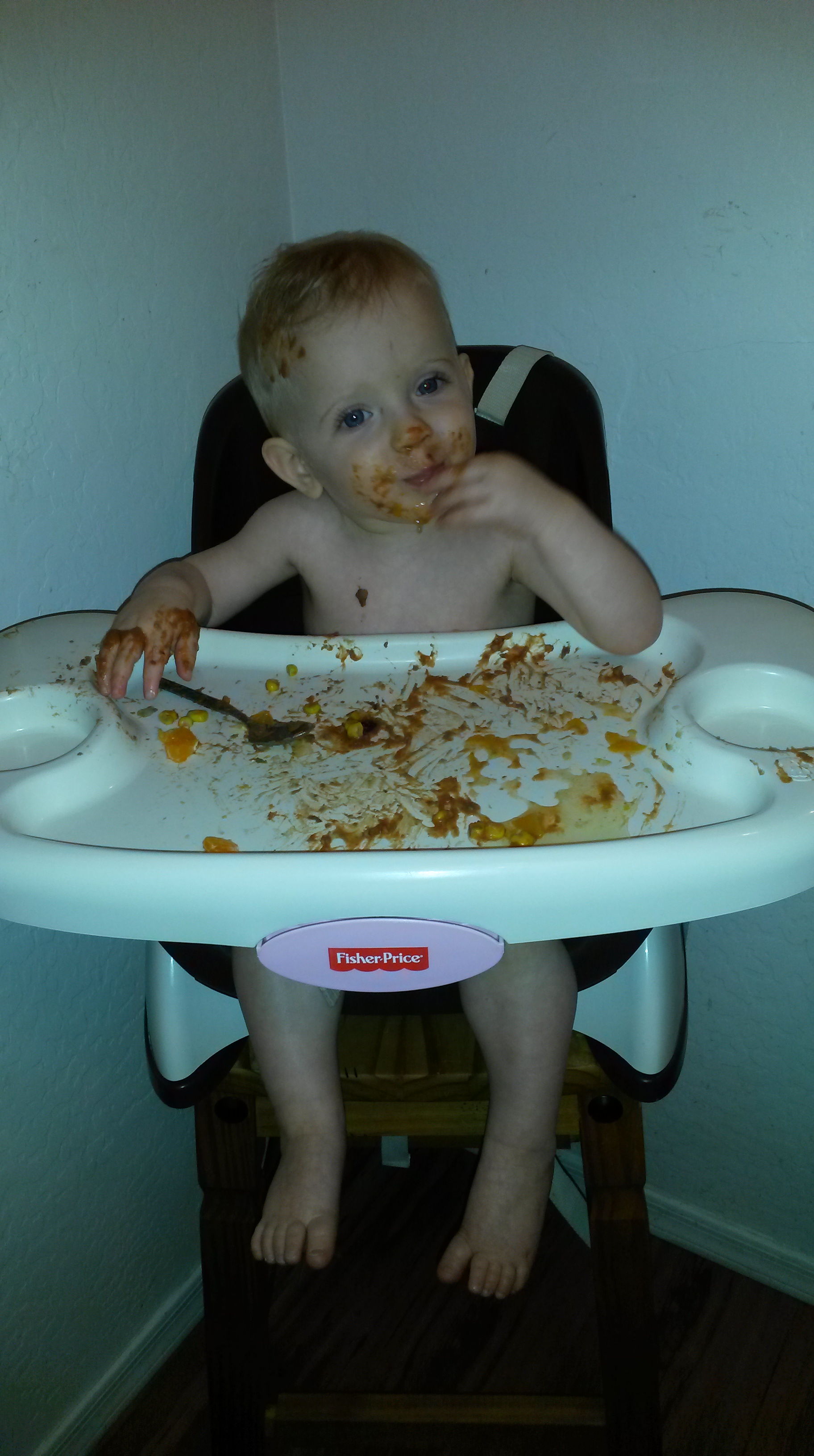 Sadly for mommy and daddy, our eating skills are coming along rather slowly.  We can’t promise that we got most of our dinner in our mouths…